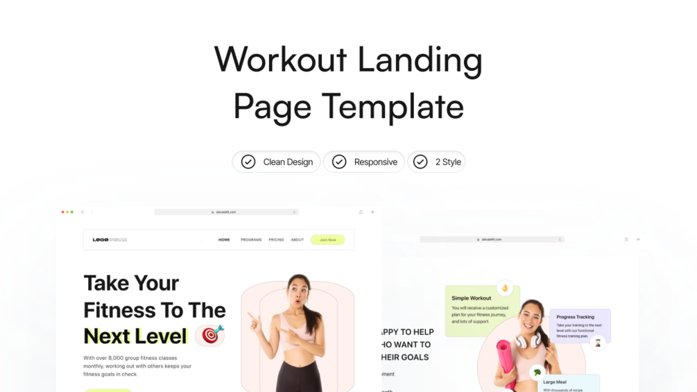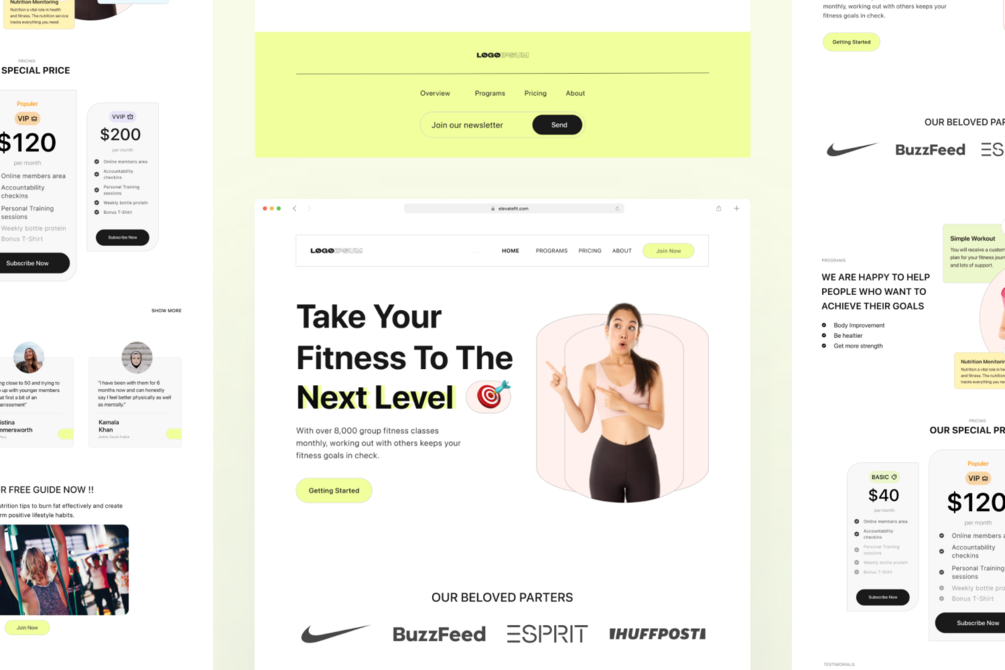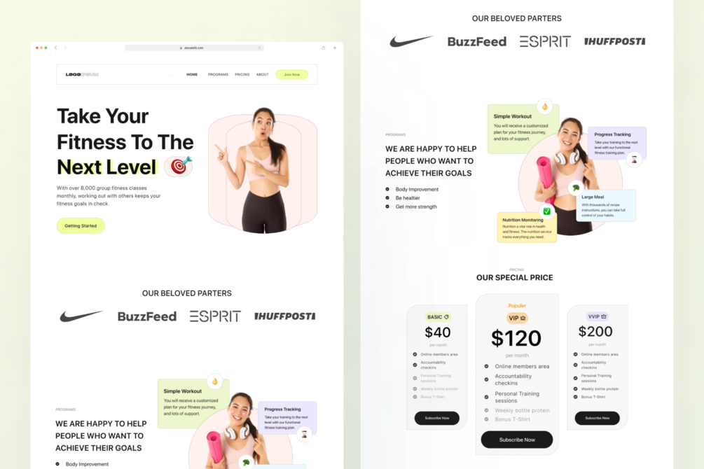 Landing page for an Workout & Fitness platform, designed to cater to both fitness enthusiasts and professional trainers, our kit offers a seamless user experience combined with an aesthetic appeal that motivates users to achieve their fitness goals.